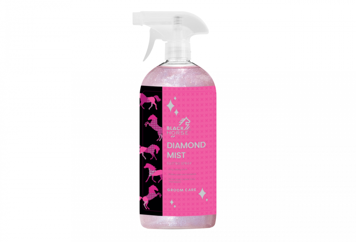 Nabłyszczająca mgiełka DIAMOND MIST dzięki zawartości drobinek brokatu zapewnia niesamowity połysk i blask oraz sprawia, że włosie pięknie mieni się w słońcu. Przeznaczona jest do bezpośredniego stosowania na sierść, grzywę oraz ogon konia. Posiada przyjemny zapach. Idealnie sprawdzi się podczas wyjazdów na zawody, pokazy czy podczas sesji zdjęciowych.