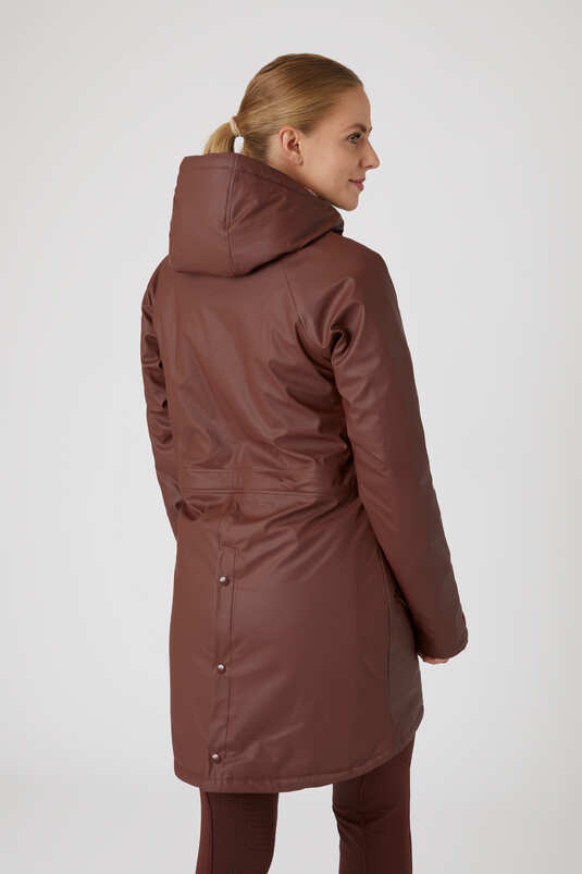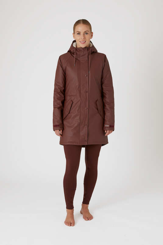 Ten miękki w dotyku nieprzemakalny płaszcz zapewni Ci ciepło i ochronę w deszczowe dni.
