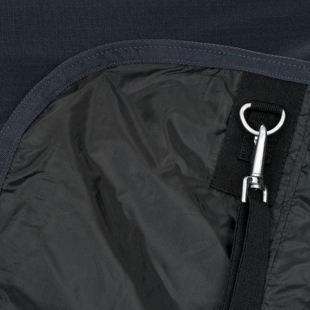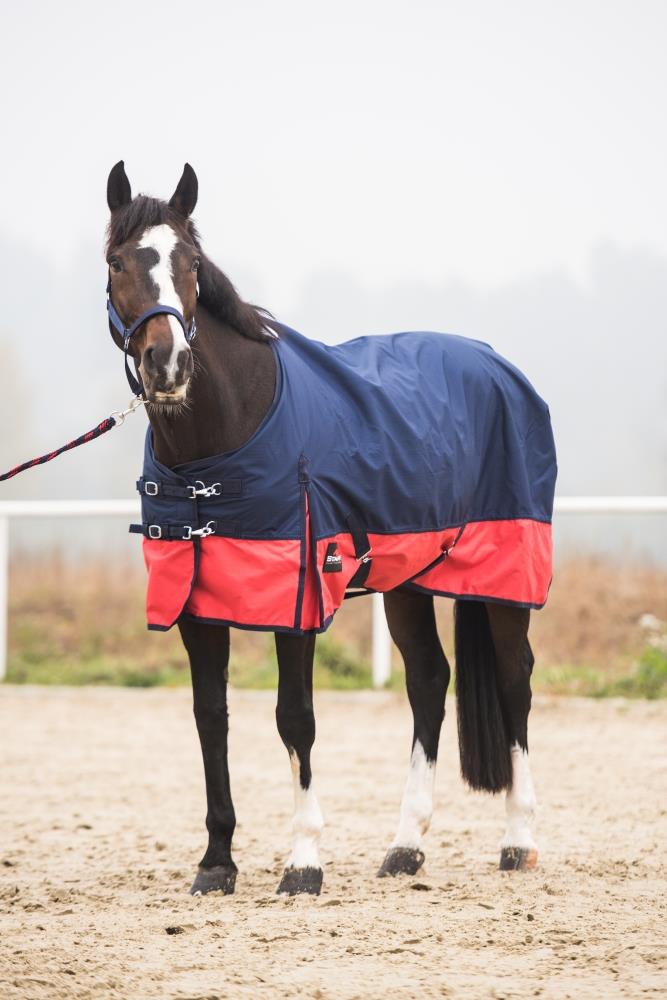 Posiada podwójne paski umożliwiające szybkie zapięcie oraz stabilną regulację. Rozcięcia materiału na łopatkach zapewniają swobodę ruchów, a pasy krzyżowe zapobiegają zsuwaniu się derki. Zawiera podszycie z futerkiem na kłębie i klapę na ogon. Posiada również pasy na nogi z możliwością odpięcia. Derka bez wypełnienia. Komfortowa i praktyczna!