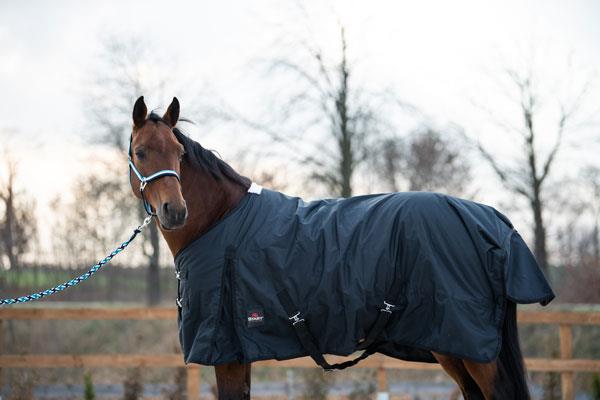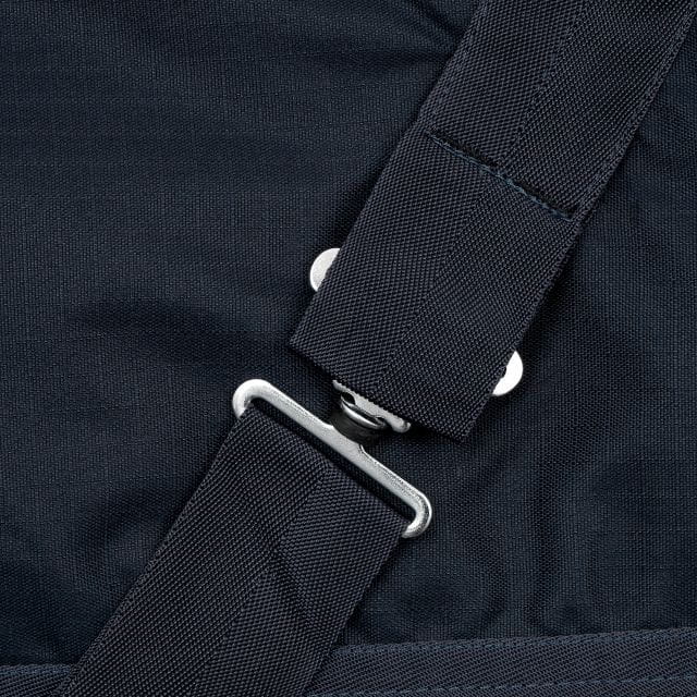 Posiada podwójne paski umożliwiające szybkie zapięcie oraz stabilną regulację. Rozcięcia materiału na łopatkach zapewniają swobodę ruchów, a pasy krzyżowe zapobiegają zsuwaniu się derki. Zawiera podszycie z futerkiem na kłębie i klapę na ogon. Posiada również pasy na nogi z możliwością odpięcia. Derka bez wypełnienia. Komfortowa i praktyczna!