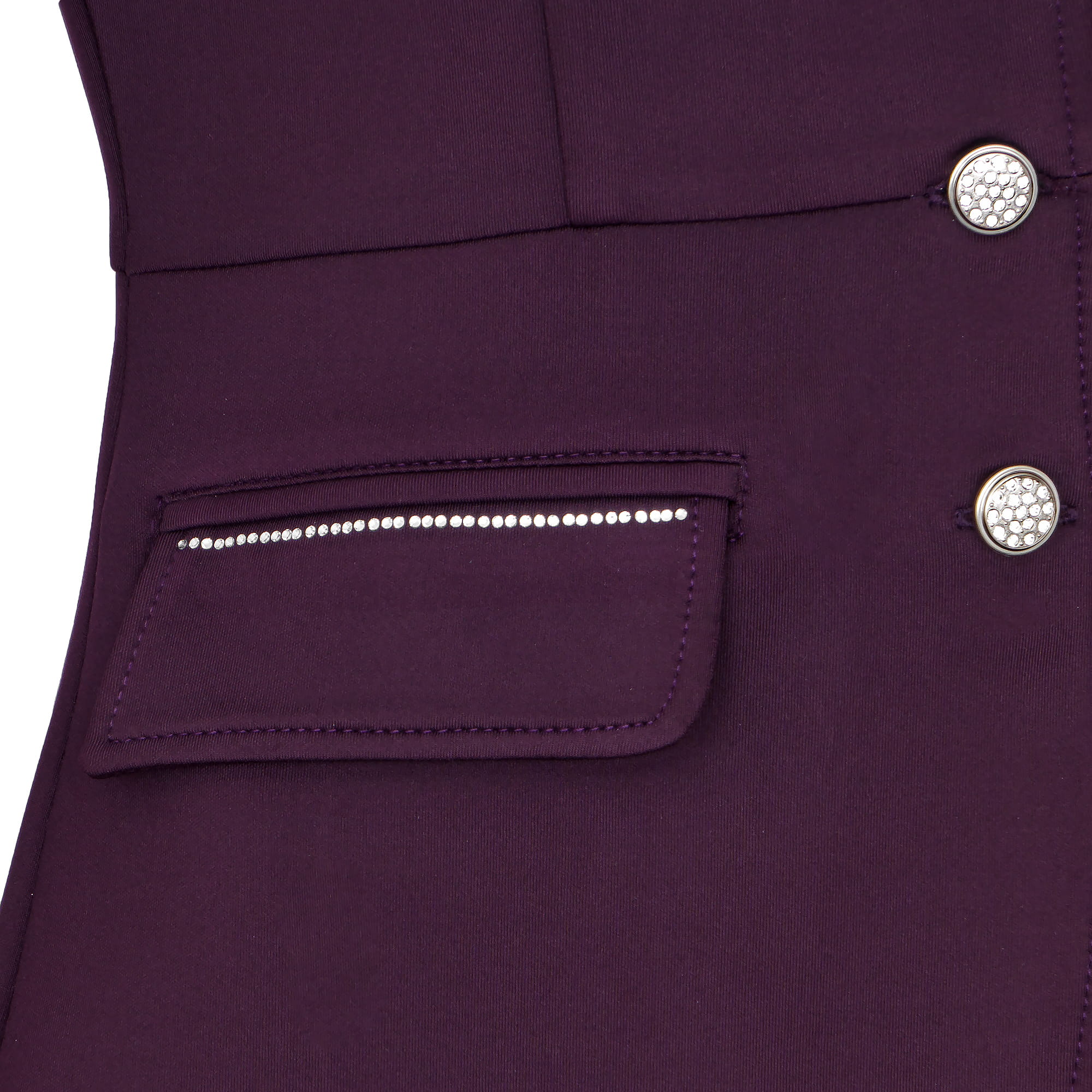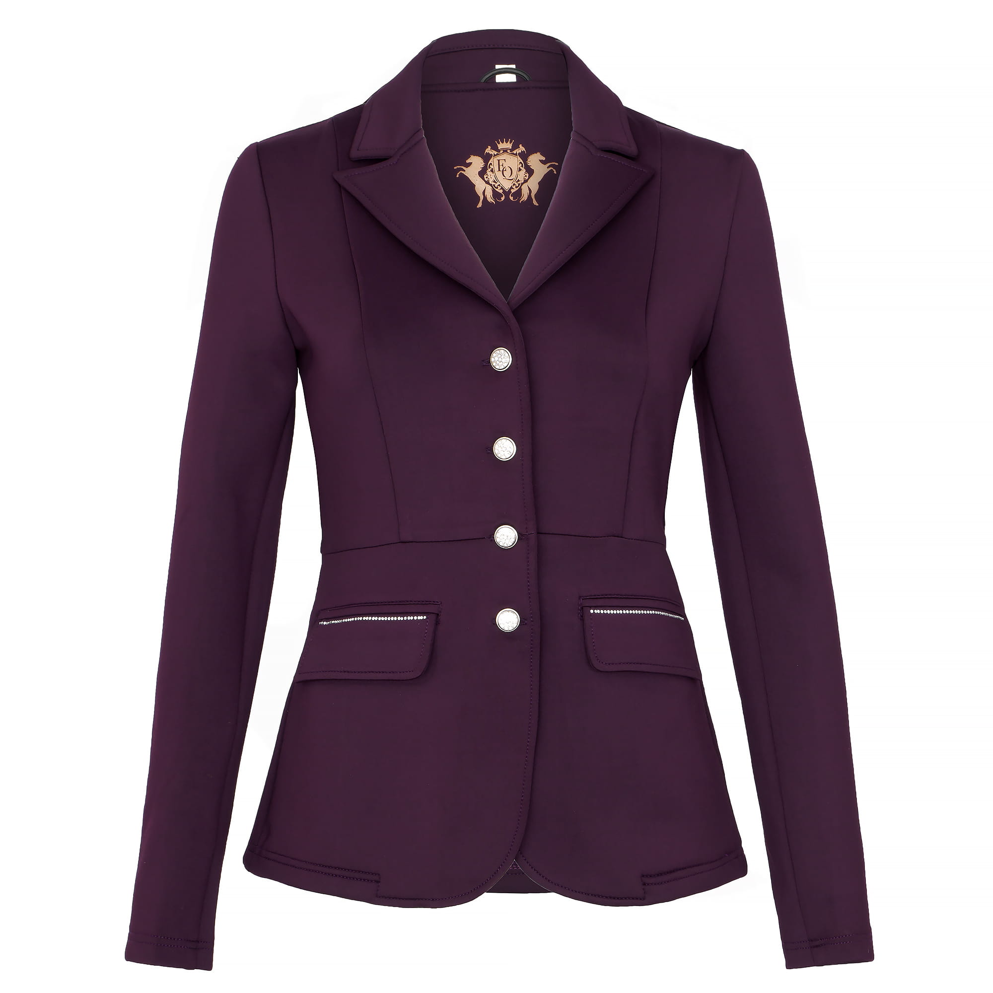 Zapinany na cztery guziki i zdobiony rzędem subtelnych kryształków na kieszeniach oraz kryształowymi guzikami, ten frak łączy elegancję z nowoczesnym stylem. Doskonały wybór na zawody, ale także na specjalne okazje, kiedy chcesz poczuć się jak prawdziwa Królowa stajni!