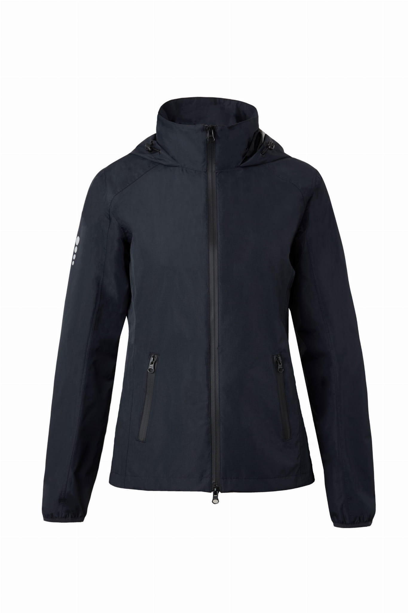 Lekka kurtka przeciwdeszczowa bez podszewki. Całkowicie wodoodporna dzięki podklejanym szwom. Przewiewny materiał zapewnia wygodę i sprawdzi się również jako nieprzemakalna warstwa zewnętrzna w deszczowe dni. Kaptur można zwinąć i schować w kołnierzu. Elastyczne wykończenie mankietów i regulowane, elastyczne troczki przy kapturze. Sygnowane detale na rękawie.