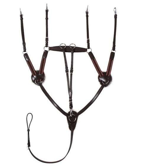 Pięciopunktowy napierśnik z odpinanym wytokiem wykonany z najwyższej jakości skóry.