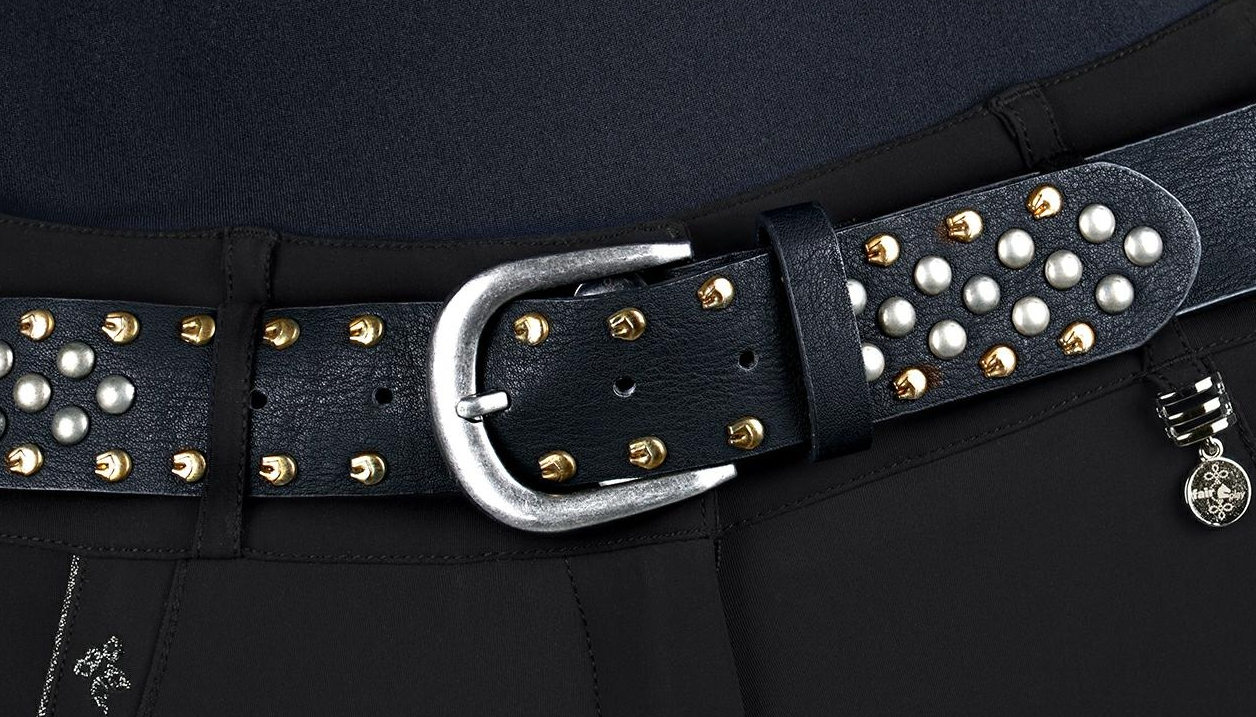 Niepowtarzalny i bardzo elegancki pasek ozdobiony nitami.