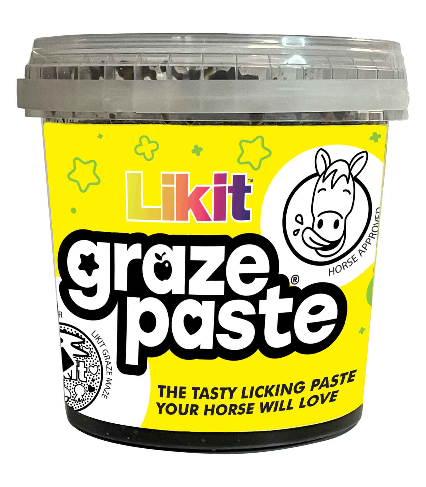 Smaczna pasta do lizania, którą Twój koń pokocha. Do nakładania na maty do lizania Likit Graze Maze.