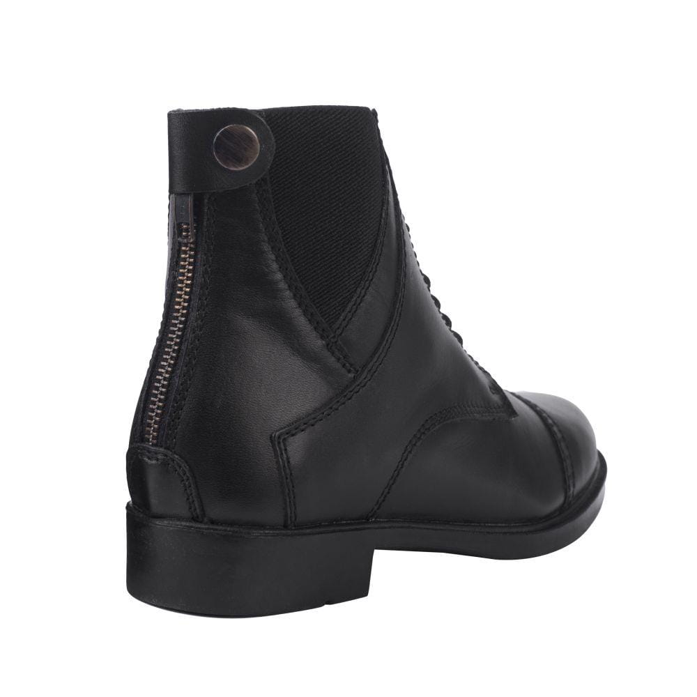 Całoroczne sztyblety wykonane z dobrej jakości skóry naturalnej. Sznurówki i elastyczne wstawki na wysokości kostki pozwalają na optymalne dopasowanie sztybletów do nogi. Posiadają również zamek z tyłu ułatwiający zakładanie. Antypoślizgowe podeszwy pomogą stabilnie utrzymać buty w strzemionach, a dekoracyjne akcenty w formie przeszyć nadają butom uroku i elegancji.
