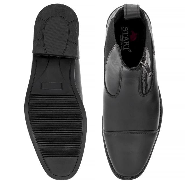 Sztyblety, które doskonale łączą w sobie styl i wygodę. Wykonane są ze skóry wołowej dobrej jakości. Zawierają elastyczne wstawki, które sprawiają, że zakładanie sztybletów jest proste i szybkie. Posiadają również praktyczny zamek, nadający dodatkowo elegancki wygląd. Wyposażone są w bardzo miękką, wyciąganą wkładkę. Antypoślizgowe podeszwy pomogą utrzymać stopy stabilnie w strzemionach. Sztyblety START Shift mają w sobie cechy, dzięki którym mogą stać się Twoim ulubionym obuwiem jeździeckim.