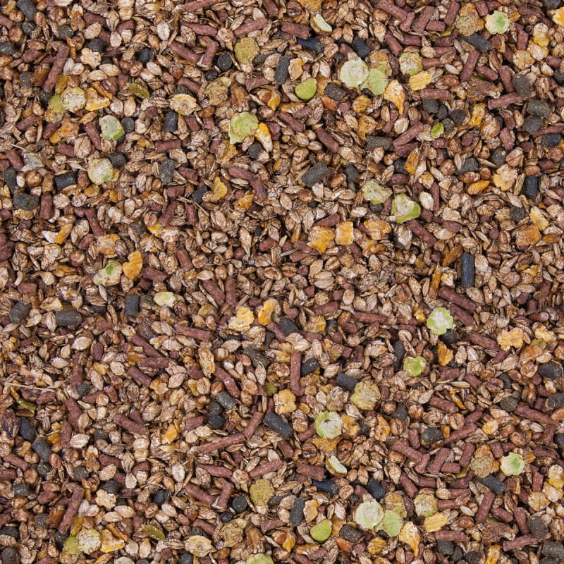 płatki jęczmienne, płatki kukurydziane, mączka z lucerny, olej lniany, orkisz, śruta sojowa, melasa z trzciny cukrowej, pszenica, jęczmień, płatki grochu, olej lniany, węglan wapnia, fosforan jednowapniowy, chlorek sodu, tlenek magnezu